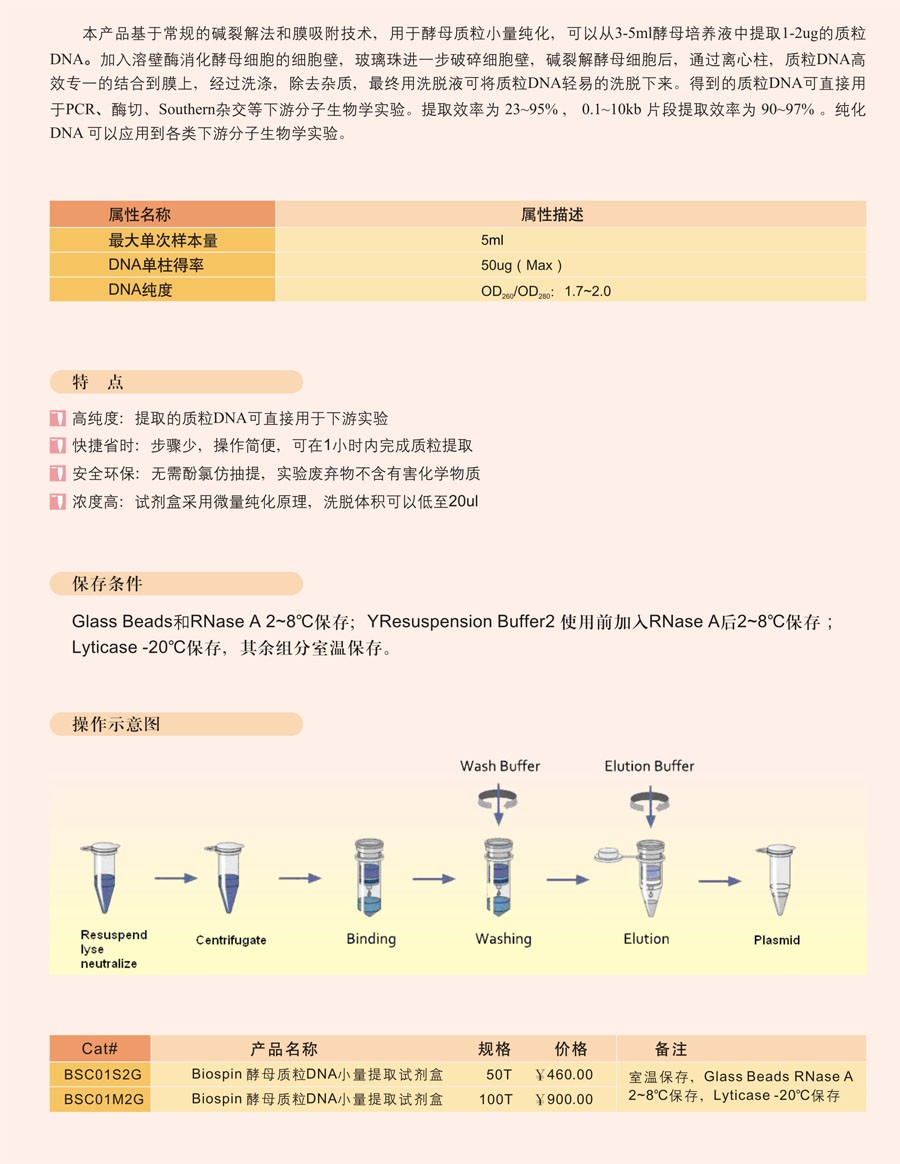 产品名 称:Biospin 酵母质粒DNA小量提取试剂盒