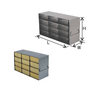 立式低温分隔架可存放纸盒、塑料盒和各种金属盒,由高品质的耐腐蚀不锈钢材料制成,设有手柄和识别卡插槽。该产品使实验样品的存取和管理更为有序,带抽屉的分隔架在推拉抽屉的同时,即可轻松存取实验样品,无须从冰箱中搬移整个分隔架。每个分隔架均有适合的安全锁定装置匹配。按照上图的示意,测量出您所使用冰箱的内部尺寸,通过这些尺寸,即可确定适合您立式冰箱的分隔架的高度(H)、长度(L)和宽度(W)。