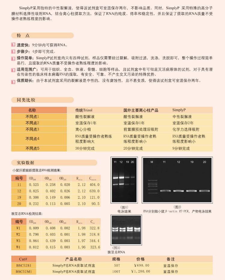产品名 称:SimplyP 总RNA提取试剂盒