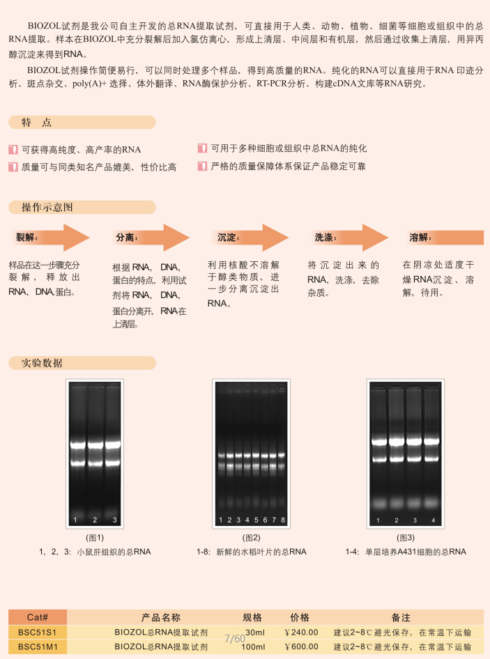 产品名 称:BIOZOL总RNA提取试剂