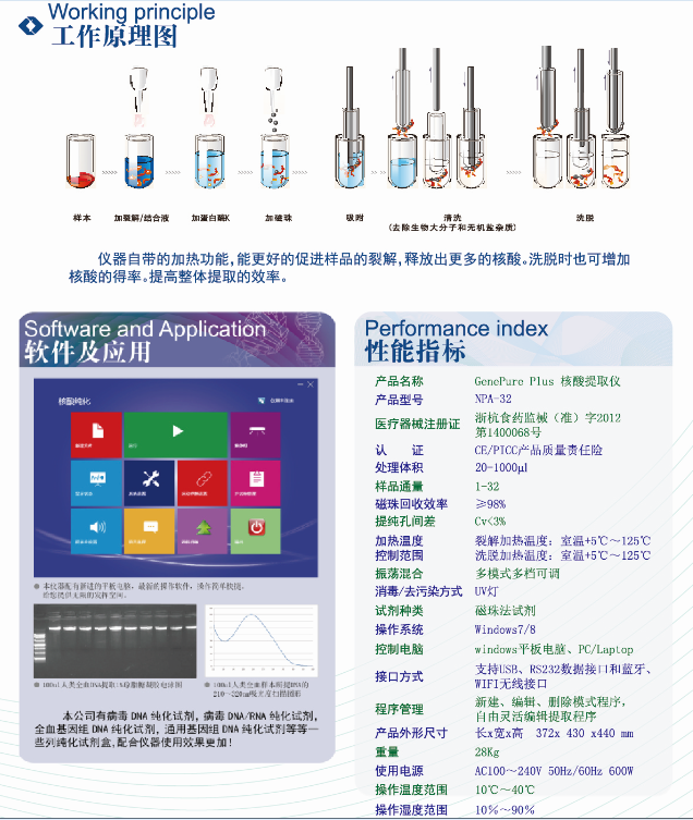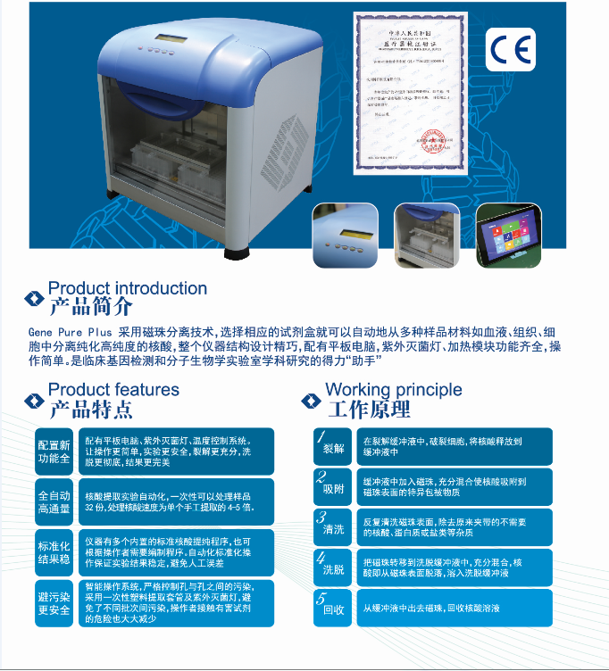 细胞中分离纯化高纯度的核酸,整个仪器结构设计精巧、操作简单。 具有省时、省力、高效及良好的一致性等特点,