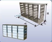 立式低温分隔架可存放纸盒、塑料盒和各种金属盒,由高品质的耐腐蚀不锈钢材料制成,设有手柄和识别卡插槽。该产品使实验样品的存取和管理更为有序,带抽屉的分隔架在推拉抽屉的同时,即可轻松存取实验样品,无须从冰箱中搬移整个分隔架。每个分隔架均有适合的安全锁定装置匹配。按照上图的示意,测量出您所使用冰箱的内部尺寸,通过这些尺寸,即可确定适合您立式冰箱的分隔架的高度(H)、长度(L)和宽度(W)。