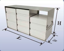 立式低温分隔架可存放纸盒、塑料盒和各种金属盒,由高品质的耐腐蚀不锈钢材料制成,设有手柄和识别卡插槽。该产品使实验样品的存取和管理更为有序,带抽屉的分隔架在推拉抽屉的同时,即可轻松存取实验样品,无须从冰箱中搬移整个分隔架。每个分隔架均有适合的安全锁定装置匹配。按照上图的示意,测量出您所使用冰箱的内部尺寸,通过这些尺寸,即可确定适合您立式冰箱的分隔架的高度(H)、长度(L)和宽度(W)。