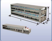 立式低温分隔架可存放纸盒、塑料盒和各种金属盒,由高品质的耐腐蚀不锈钢材料制成,设有手柄和识别卡插槽。该产品使实验样品的存取和管理更为有序,带抽屉的分隔架在推拉抽屉的同时,即可轻松存取实验样品,无须从冰箱中搬移整个分隔架。每个分隔架均有适合的安全锁定装置匹配。按照上图的示意,测量出您所使用冰箱的内部尺寸,通过这些尺寸,即可确定适合您立式冰箱的分隔架的高度(H)、长度(L)和宽度(W)。