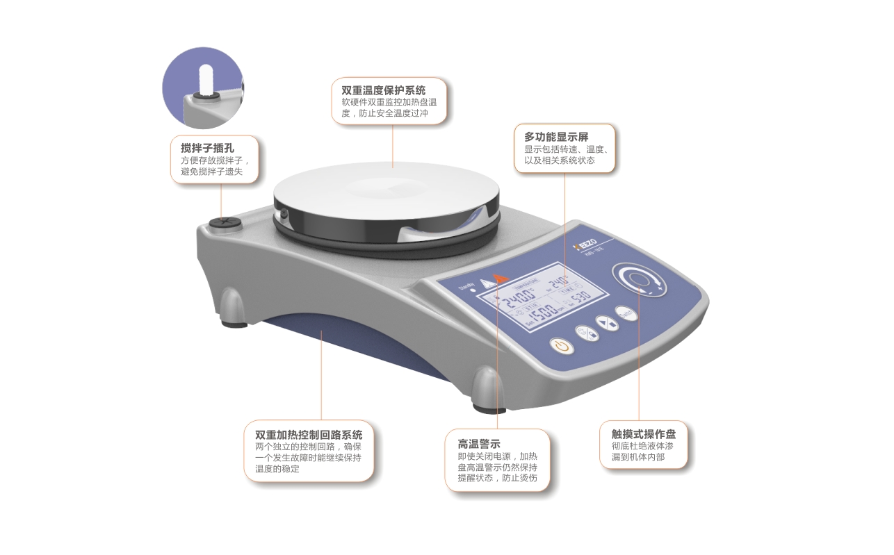 ● 双重安全温度保护系统,软硬件双重独立监控加热盘温度,防止安全温度过冲